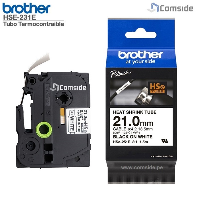 Sé el primero en valorar “Cinta Brother HSE-251E Termocontraible negro sobre blanco 21mm x 1.5mts”